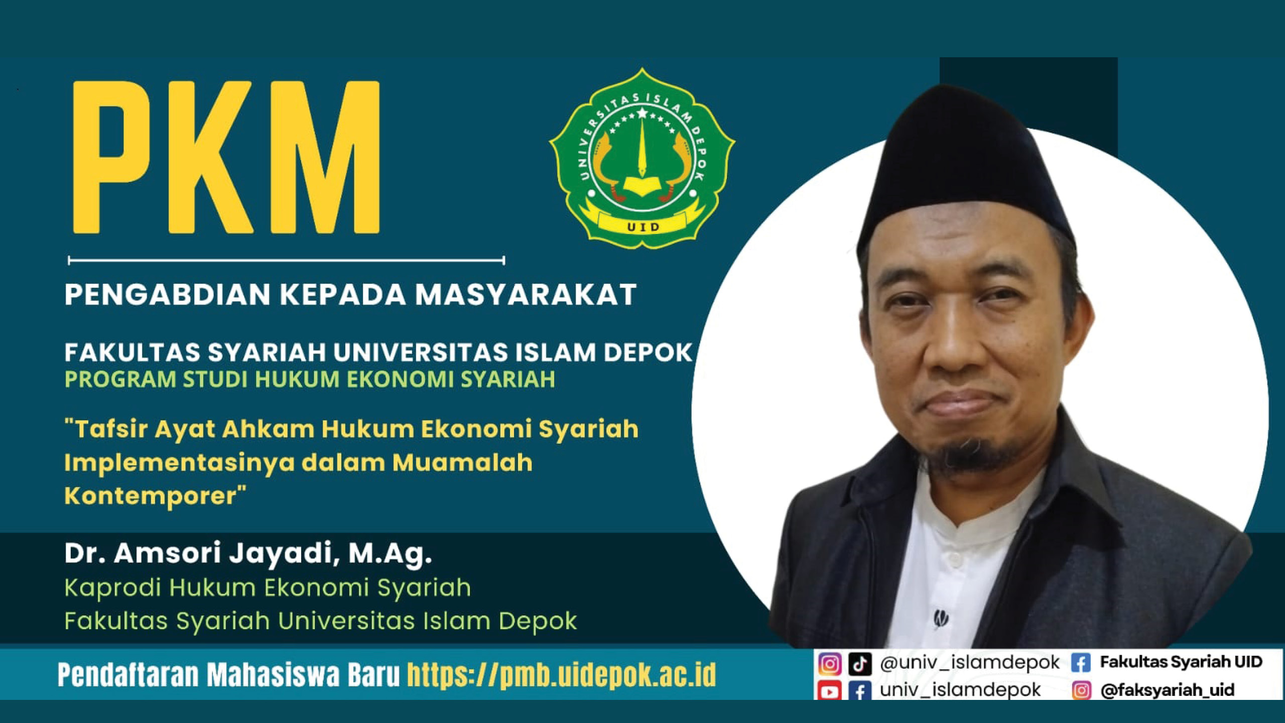 Depok, 14 Maret 2025 — Dalam rangka menjalankan salah satu tridharma perguruan tinggi, Program Studi Hukum Ekonomi Syariah Fakultas Syariah Universitas Islam Depok (UID) menggelar kegiatan Pengabdian Kepada Masyarakat (PKM) bertajuk Tafsir Ayat Ahkam Hukum Ekonomi Syariah dan Implementasinya dalam Muamalah Kontemporer.