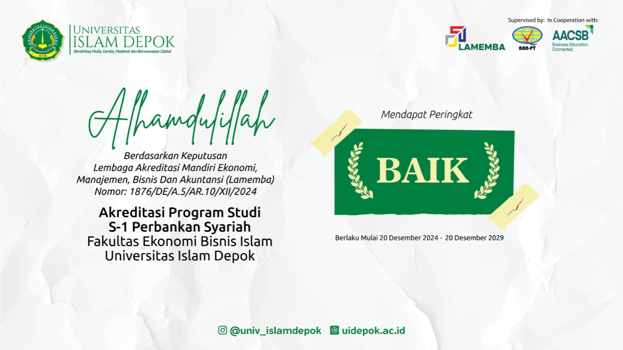 Program Studi Perbankan Syariah di Universitas Islam berhasil meraih peringkat akreditasi "Baik" dari Lembaga Akreditasi Mandiri Ekonomi, Manajemen, Bisnis, dan Akuntansi (LAMEMBA). Pencapaian ini menjadi salah satu bukti peningkatan kualitas akademik dan tata kelola program studi di lingkungan universitas.