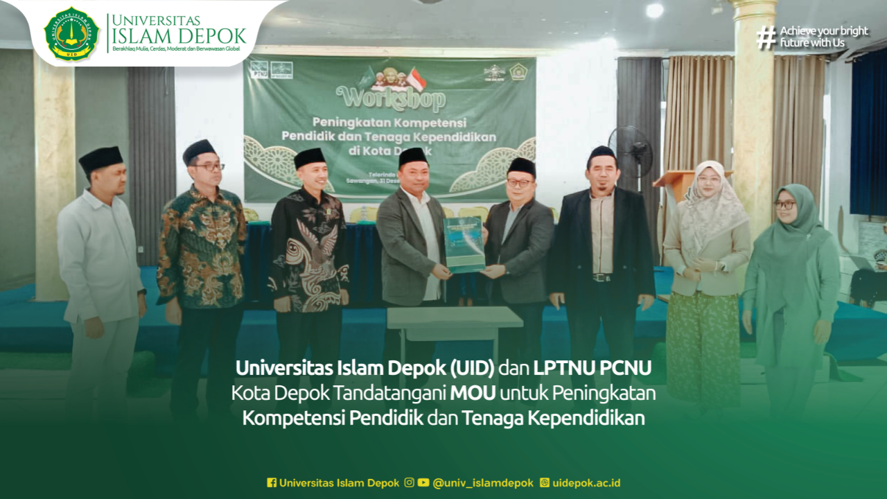 Depok, 31 Desember 2024 – Universitas Islam Depok (UID) bersama Lembaga Pendidikan Tinggi Nahdlatul Ulama (LPTNU) Pengurus Cabang Nahdlatul Ulama (PCNU) Kota Depok menandatangani Nota Kesepahaman (Memorandum of Understanding/MoU) strategis. Kerjasama ini bertujuan meningkatkan kompetensi pendidik dan tenaga kependidikan di Kota Depok, sejalan dengan komitmen kedua institusi dalam mendukung mutu pendidikan di Depok
